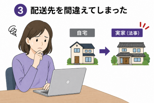 普段のネットショッピングと同じ感覚で注文してしまい、配送先を自宅に設定してしまうケースです。