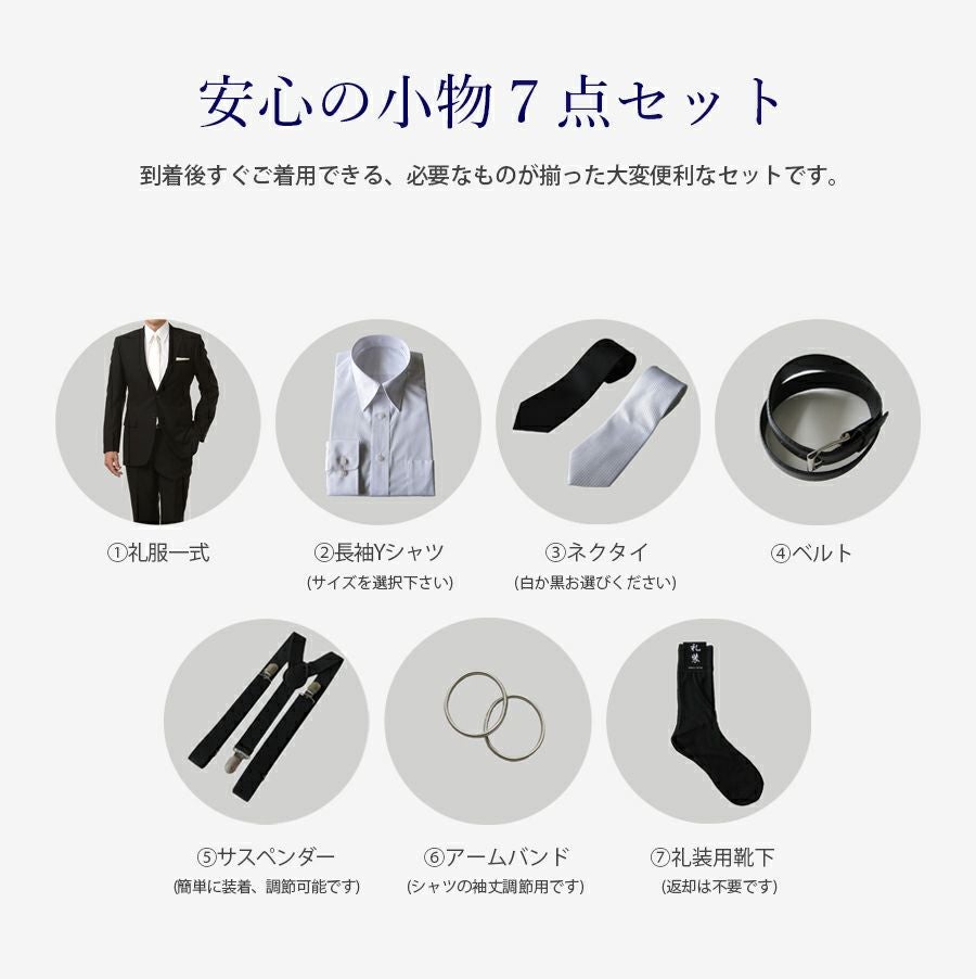 【BB7サイズ】 メンズ ベーシックシングル軽量ストレッチ7点セット 喪服・礼服・フォーマルレンタル