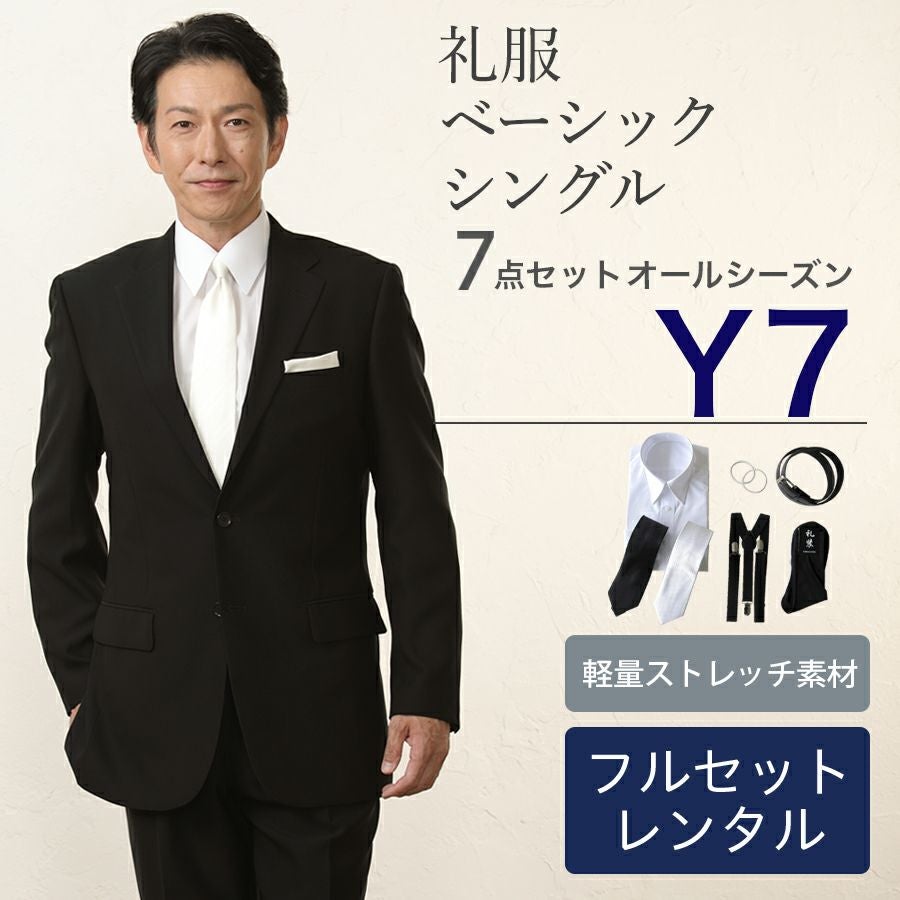 【Y7サイズ】 メンズ ベーシックシングル軽量ストレッチ7点セット 喪服・礼服・フォーマルレンタル