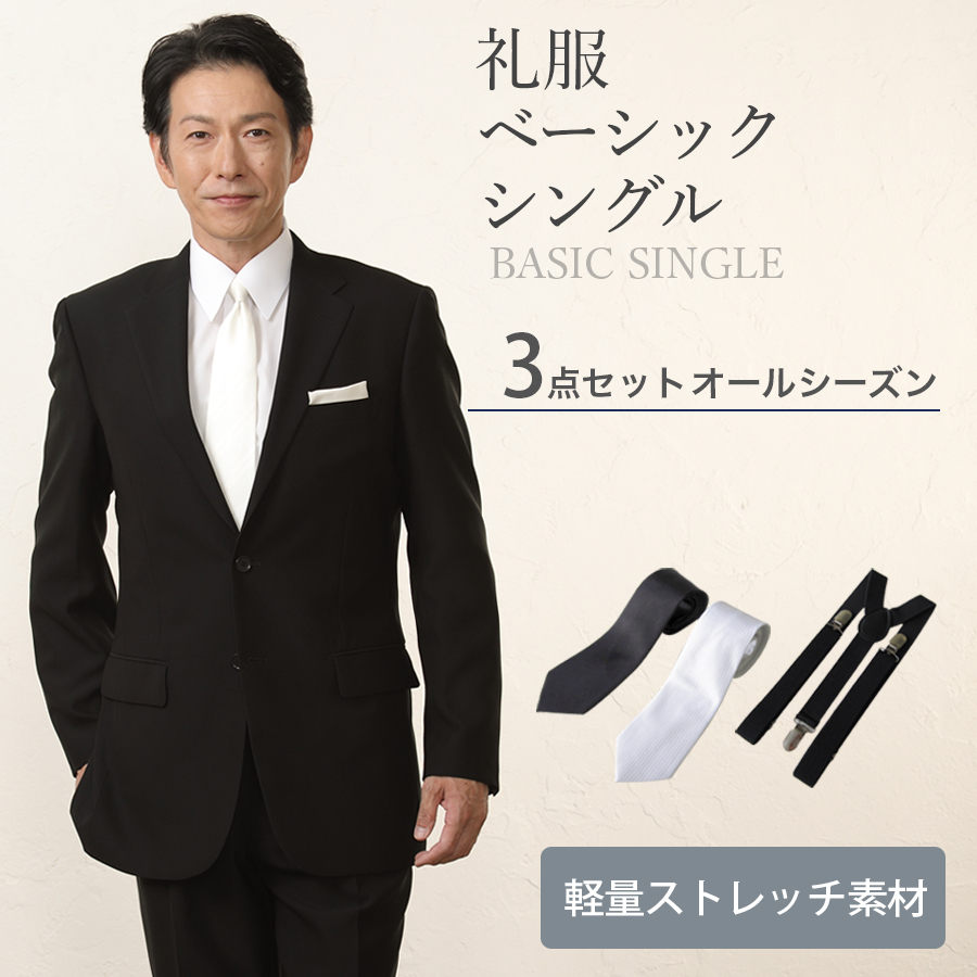メンズ ベーシックシングル軽量ストレッチ3点セット 喪服・礼服・フォーマルレンタル