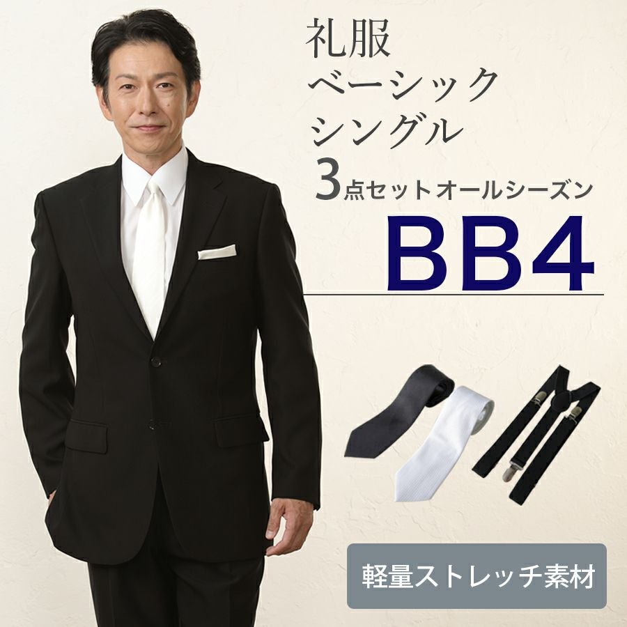 【BB4サイズ】メンズ ベーシックシングル軽量ストレッチ3点セット 喪服・礼服・フォーマルレンタル