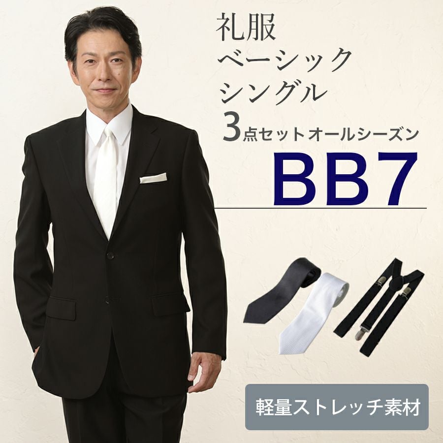 【BB7サイズ】メンズ ベーシックシングル軽量ストレッチ3点セット 喪服・礼服・フォーマルレンタル