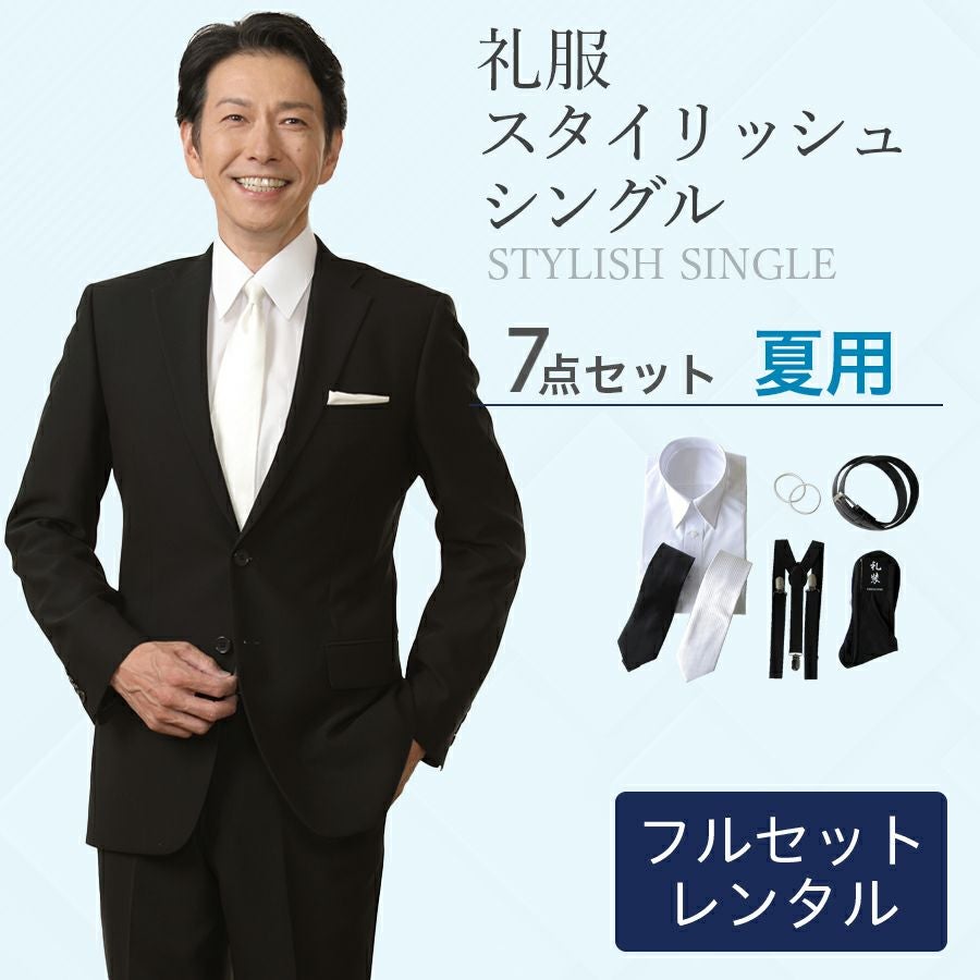 メンズ 夏用スタイリッシュシングル7点セット 喪服・礼服・フォーマルレンタル