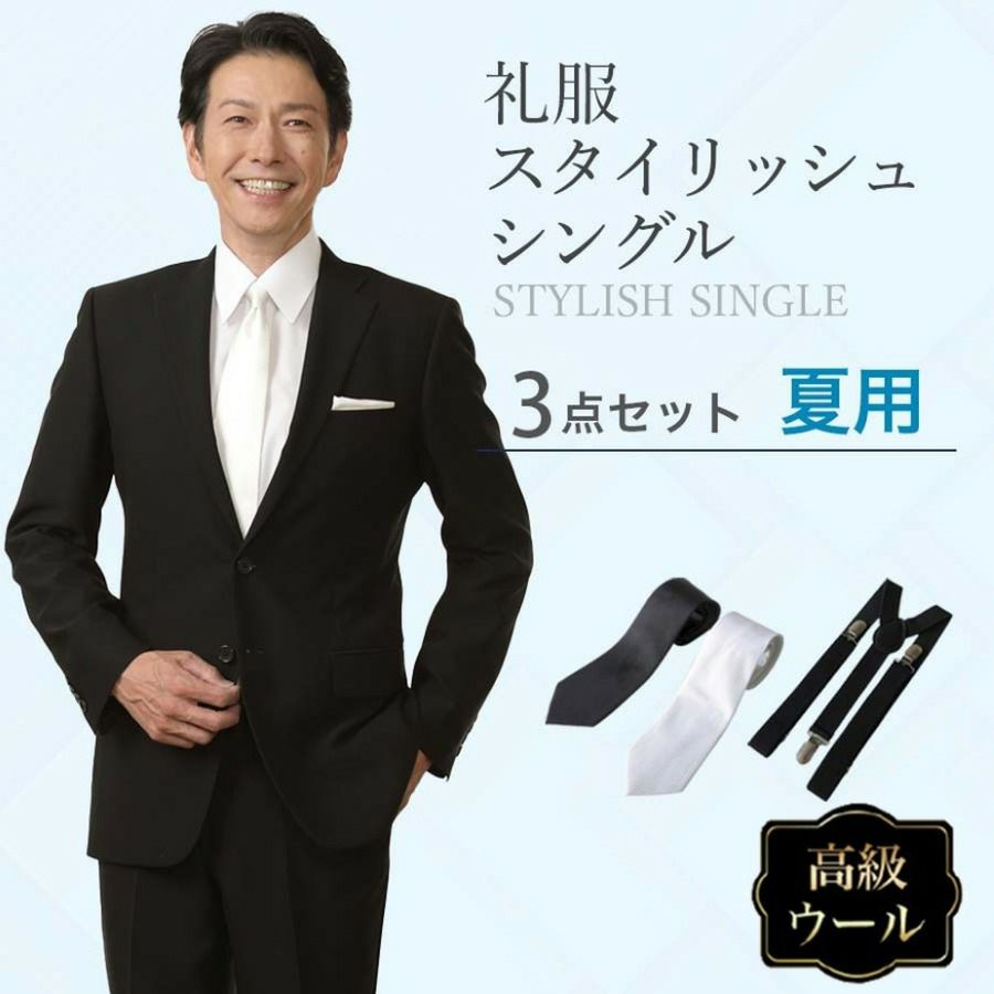 メンズ 夏用ウール混素材使用スタイリッシュシングル3点セット 喪服・礼服・フォーマルレンタル