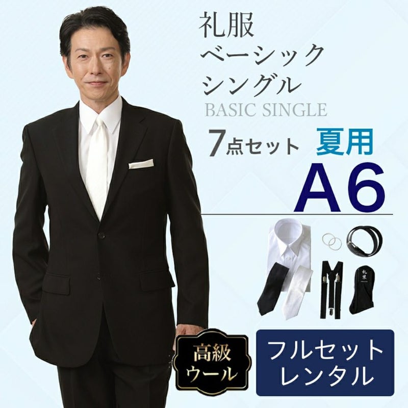 6. 【A6サイズ】メンズ 夏用ウール混素材使用ベーシックシングル 7点セット 喪服・礼服・フォーマルレンタル