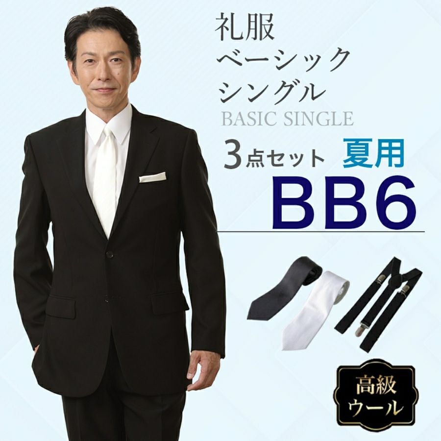 【BB6サイズ】メンズ 夏用ウール混素材使用ベーシックシングル3点セット 喪服・礼服・フォーマルレンタル