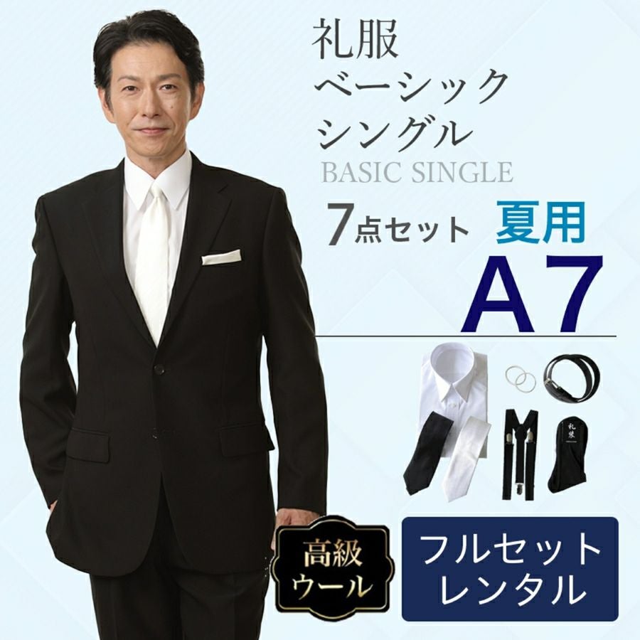 【A7サイズ】メンズ 夏用ウール混素材使用ベーシックシングル 7点セット 喪服・礼服・フォーマルレンタル