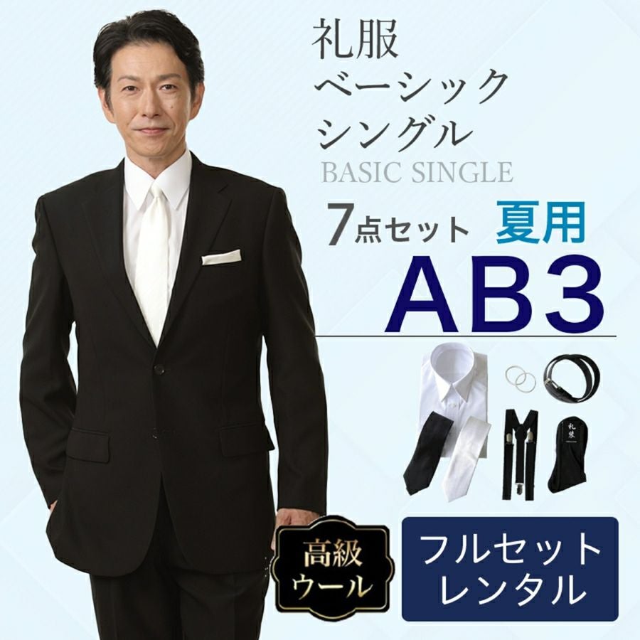 【AB3サイズ】メンズ 夏用ウール混素材使用ベーシックシングル 7点セット 喪服・礼服・フォーマルレンタル