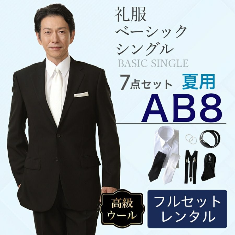 【AB8サイズ】メンズ 夏用ウール混素材使用ベーシックシングル 7点セット 喪服・礼服・フォーマルレンタル