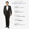 本来タキシードの襟型は、ショールカラーと襟先の尖ったピークドラペルとありますが、当店ではより柔らかでオーソドックスなショールカラーをご用意させていただきました。