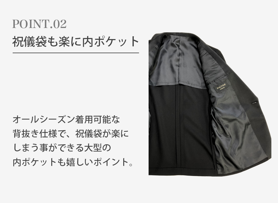 ・上着の内ポケットには祝儀袋も楽に入るビッグポケット。