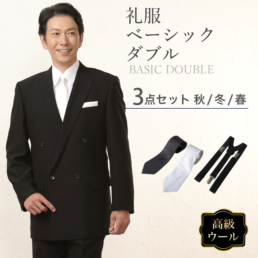 メンズ ウール素材使用ベーシックダブル3点セット 喪服・礼服・フォーマルレンタル