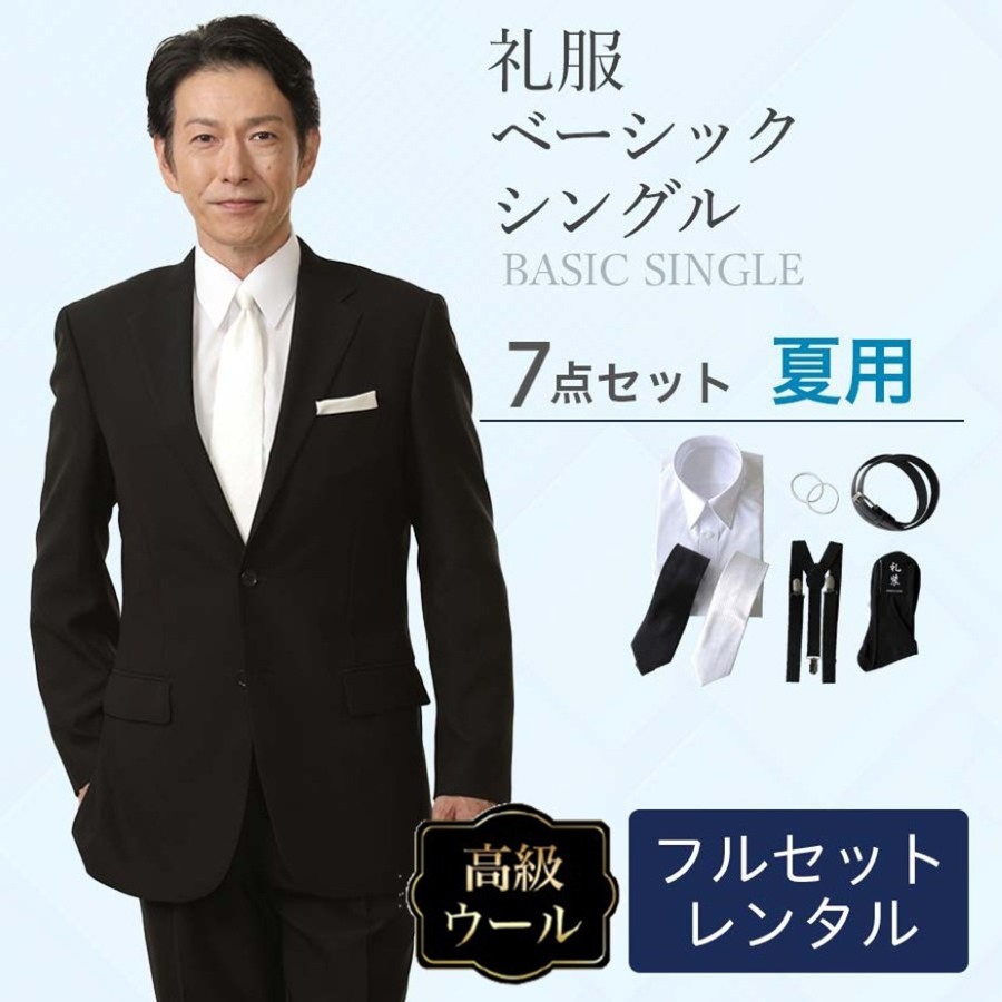 【レンタル】夏用ベーシックシングル 7点セット [男性用] [喪服 レンタル] [礼服 レンタル] [フォーマル レンタル] [喪服 メンズ] [礼服 メンズ] [大きいサイズ] [葬儀] [結婚式] [夏物] [軽量] [涼しい] [翌日配送] [FOL-200-F]