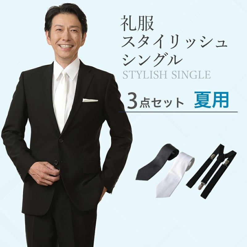 メンズ 夏用スタイリッシュシングル3点セット 喪服・礼服・フォーマルレンタル
