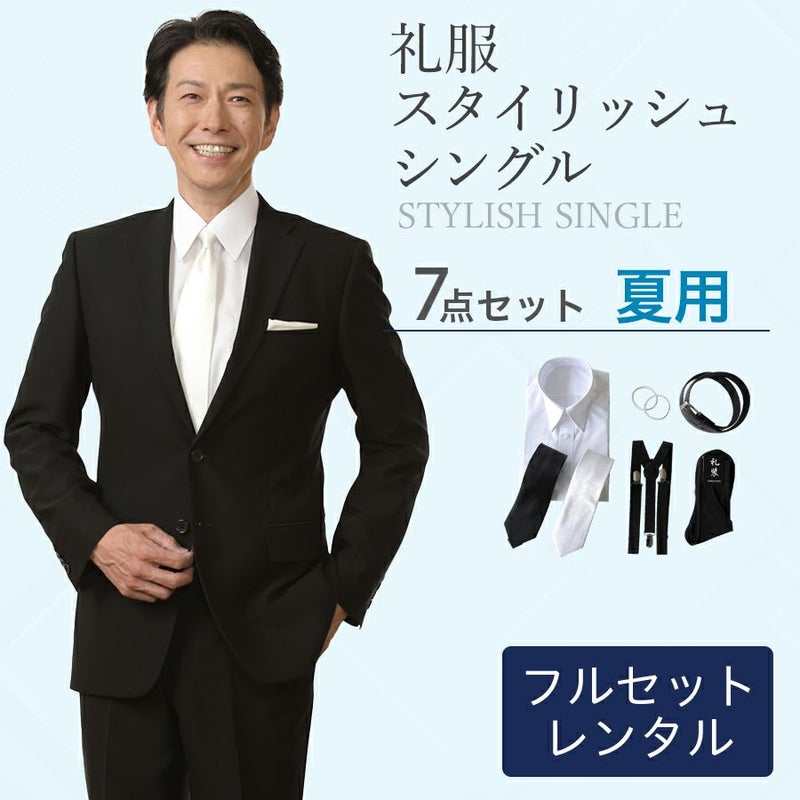 【レンタル】夏用スタイリッシュシングル7点セット [男性用] [喪服 レンタル] [礼服 レンタル] [フォーマル レンタル] [喪服 メンズ] [礼服 メンズ] [セット] [細身] [葬儀] [結婚式] [夏物] [軽量] [涼しい] [翌日配送] [FOL-PL05-F]