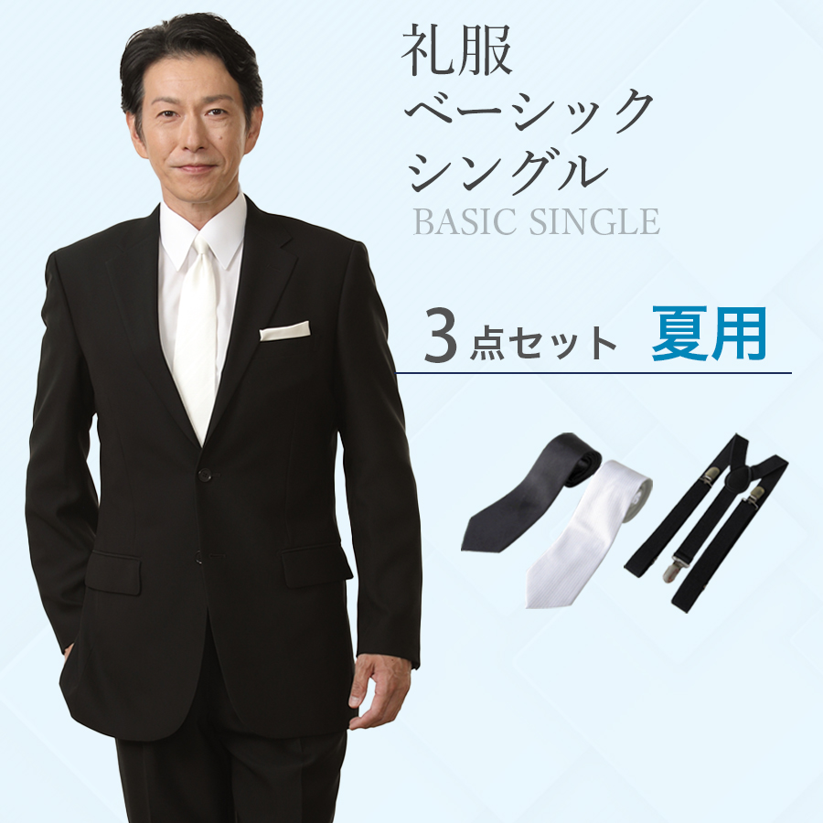 メンズ 夏用ベーシックシングル3点セット 喪服・礼服・フォーマルレンタル