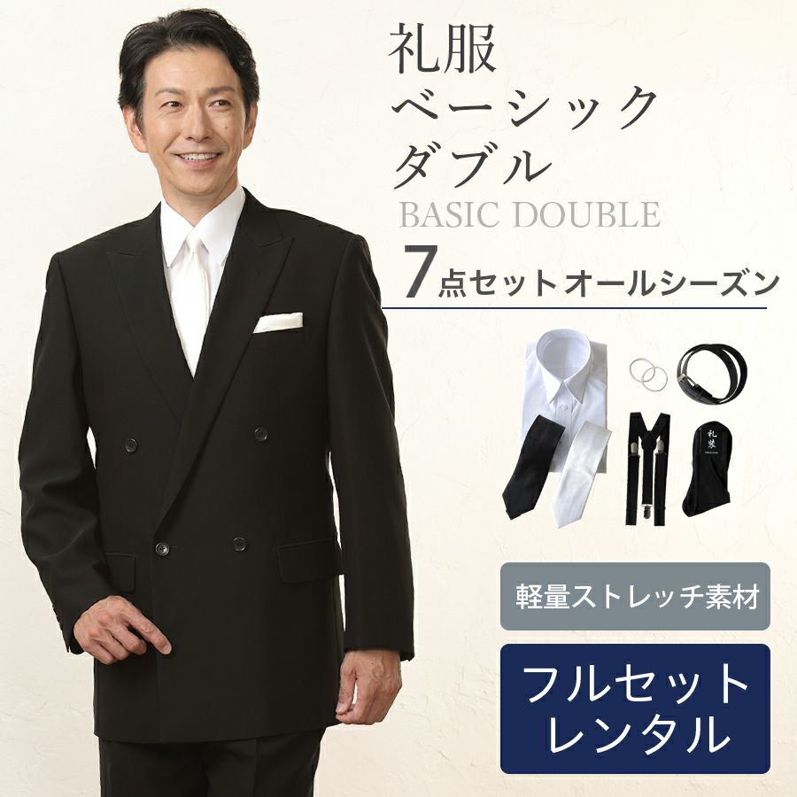 メンズ ベーシックダブル軽量ストレッチ7点セット 喪服・礼服・フォーマルレンタル
