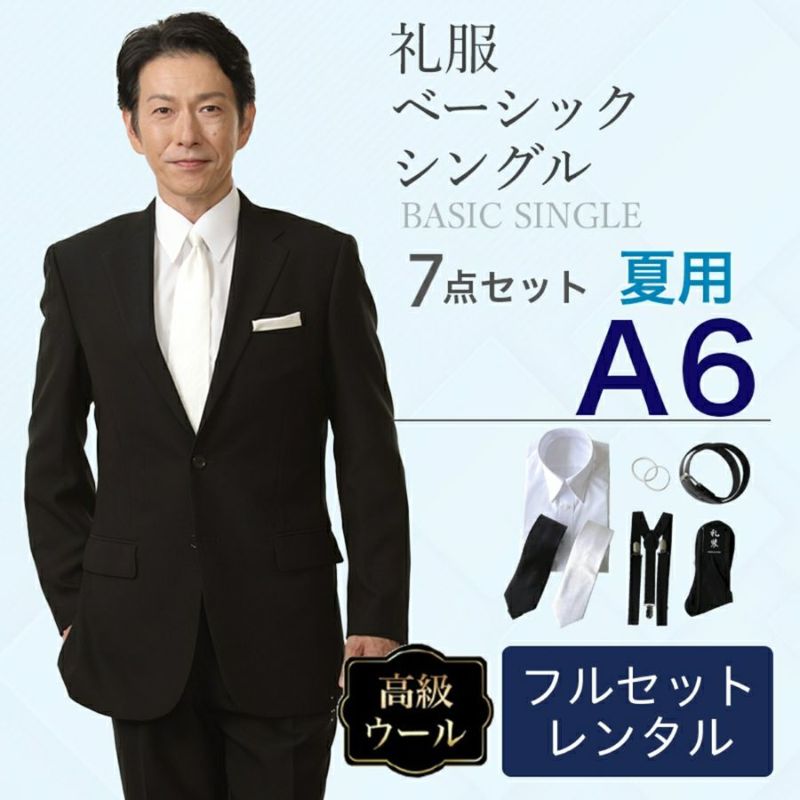 【A6サイズ】メンズ 夏用ウール混素材使用ベーシックシングル 7点セット 喪服・礼服・フォーマルレンタル