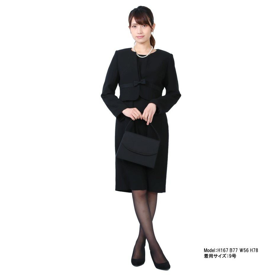 レディース ノーカラージャケット(サテンリボン付)アンサンブル小物4点セット