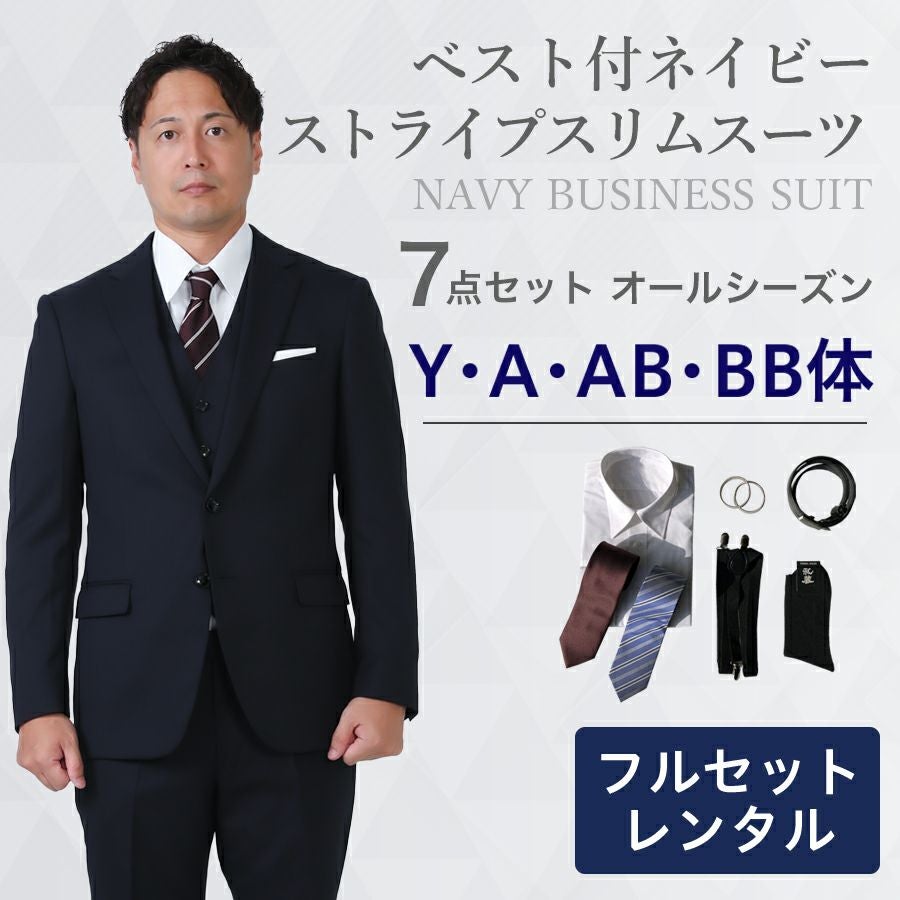 メンズ ネイビーストライプスリムスーツ7点セット レンタルスーツ