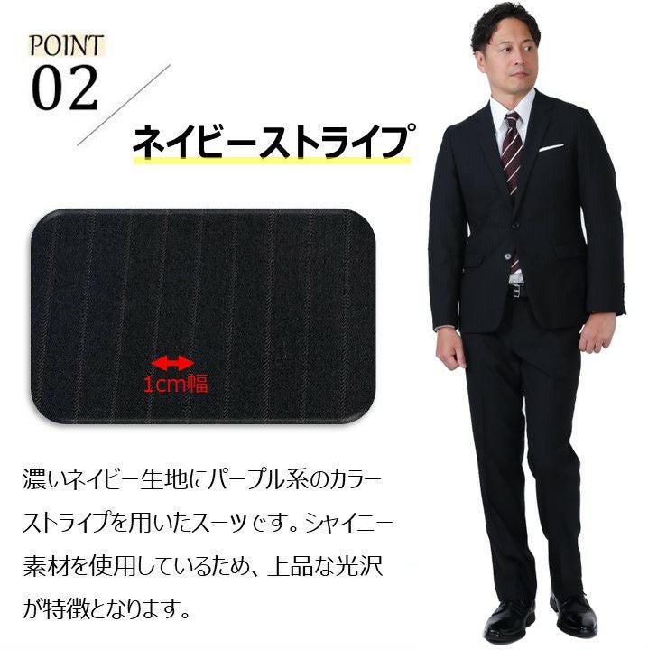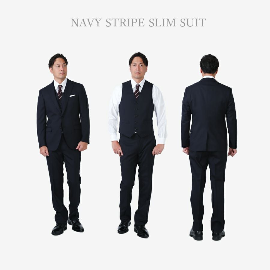 メンズ ネイビーストライプスリムスーツ3点セット スーツレンタル