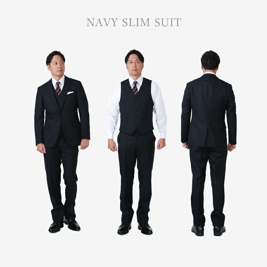 メンズ ベスト付ネイビー無地スリムスーツ3点セット 秋冬用スーツレンタル