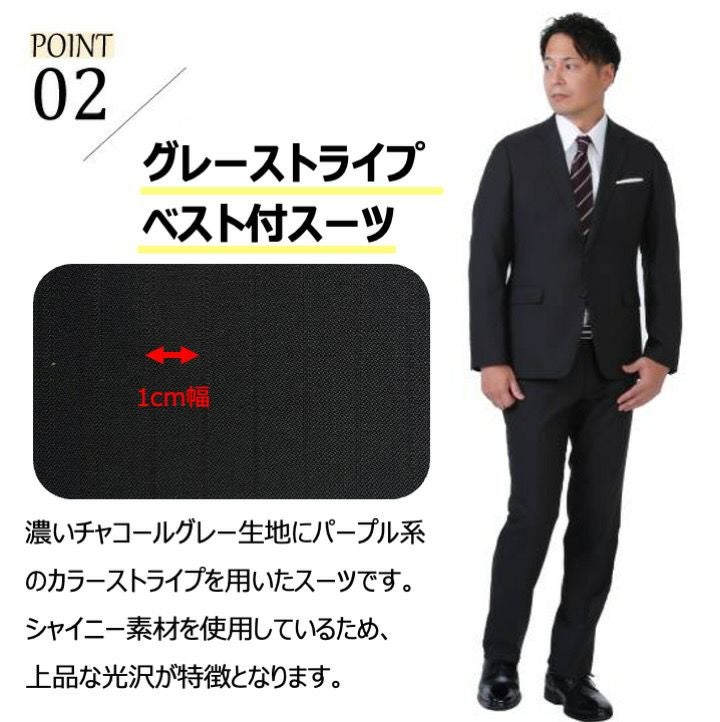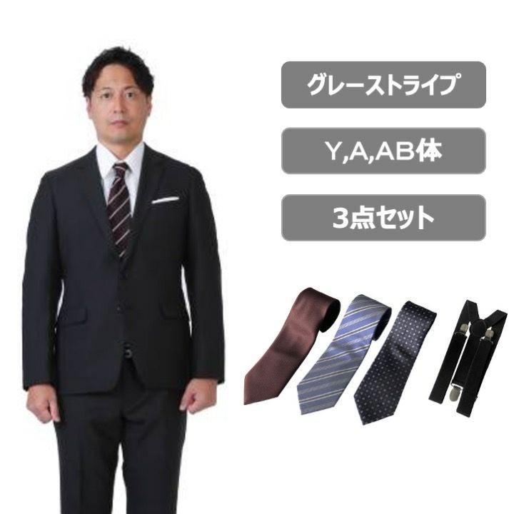メンズ グレーストライプスリムスーツ3点セット スーツレンタル