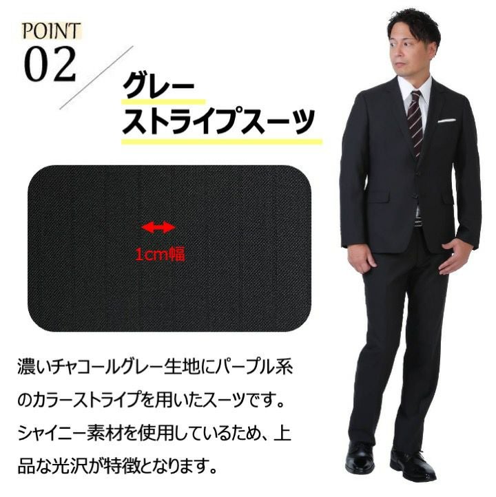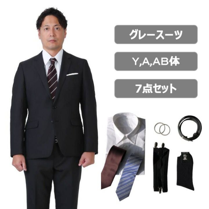 メンズ グレーストライプスリムスーツ7点セット レンタルスーツ