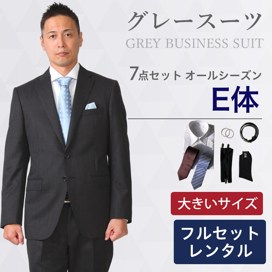 【レンタル】大きいサイズ用グレースーツ7点セット [キングサイズ] [男性用] [レンタル スーツ] [スーツ レンタル] [ビジネス] [ストライプ] [リクルート] [面接用] [卒業式] [結婚式] [成人式] [3泊4日] [翌日配送] [当日発送] [送料無料] [FOL-1117132C-F]