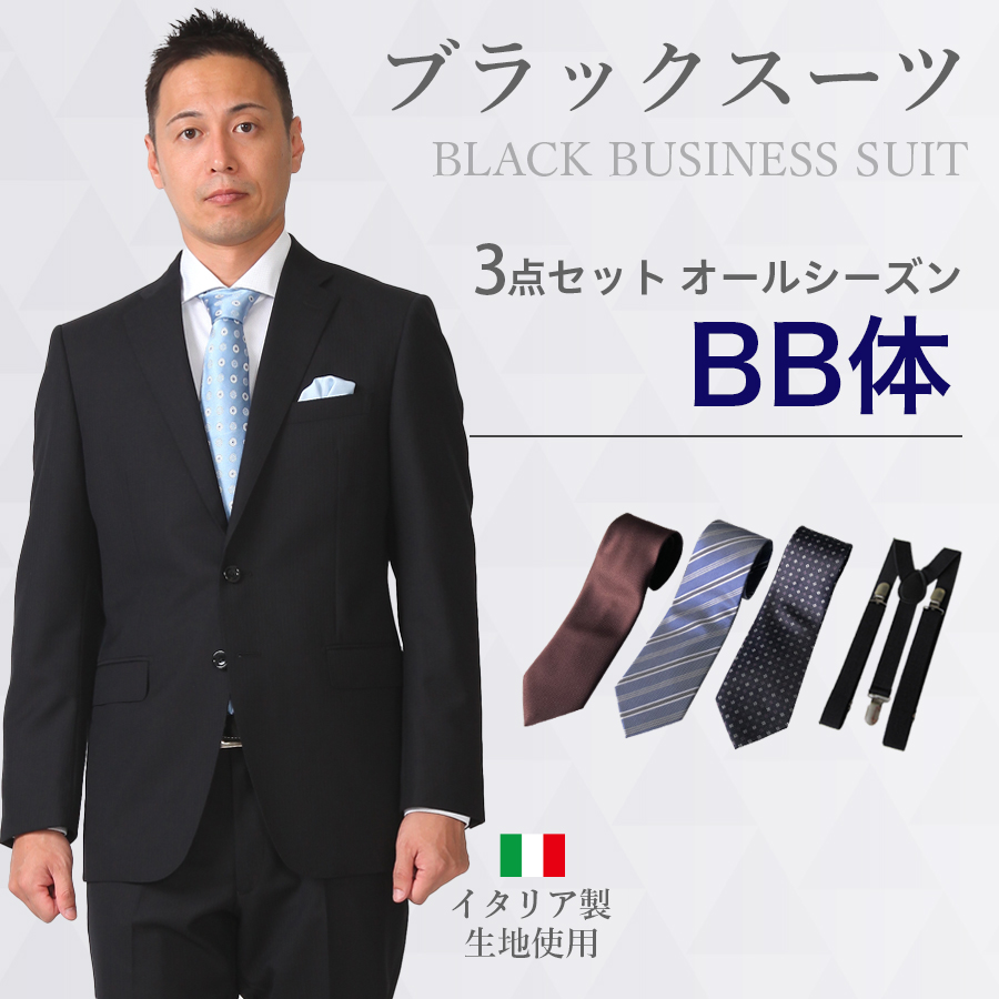 メンズ BB体ブラックスーツ3点セット 喪服・礼服・フォーマルレンタル