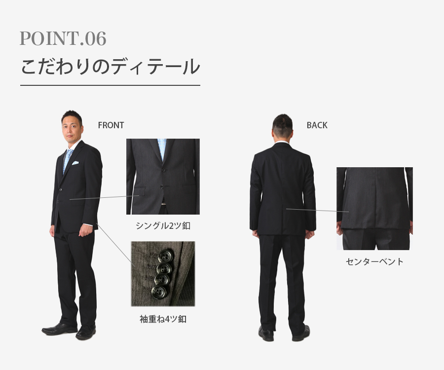 プラスマイナス6cm調節ができることから、初めてスーツを着られる方やサイズが不安な方にも安心して着用することができます!