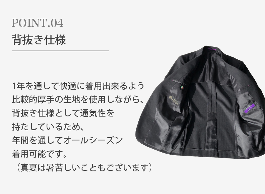 イタリア生地特有の柔らかさと光沢感が晴れの日にぴったりの1着です。