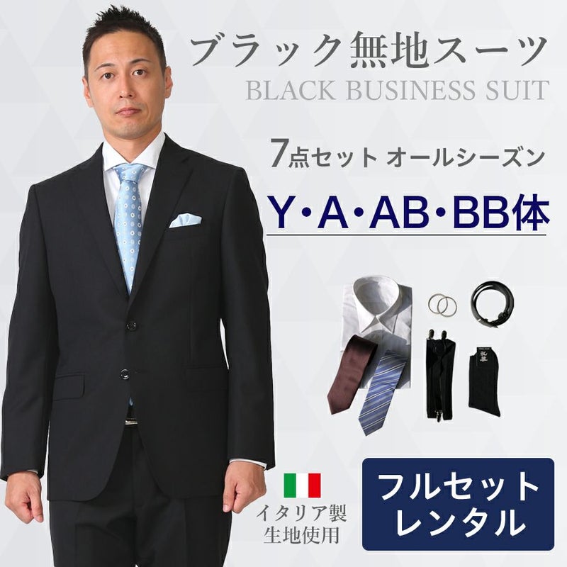 【レンタル】ブラック無地スーツ7点セット [男性用] [レンタル スーツ] [スーツ レンタル] [ビジネス] [リクルート] [面接用] [卒業式] [結婚式] [成人式][3泊4日] [翌日配送] [当日発送] [送料無料] [FOL-1216300A-F]