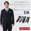 ★【大きいサイズ用】さまざまなシーンに対応するベスト付ネイビーストライプスーツ・ウール混紡生地を使用し、柔らかさと質感も美しく晴れの日にぴったりの1着です。・かたちは細身のすっきりとしたシルエット。・仕事からリクルート、晴れの日(授業参観、七五三、成人式、結婚式)などなど幅広いシーンで活躍してくれること間違いありません!!