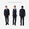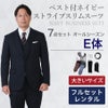 5. メンズ 大きいサイズ用ベスト付ネイビーストライプスリムスーツ7点セット 秋冬用スーツレンタル