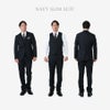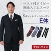 5. メンズ 大きいサイズ用ベスト付ネイビー無地スリムスーツ3点セット 秋冬用スーツレンタル