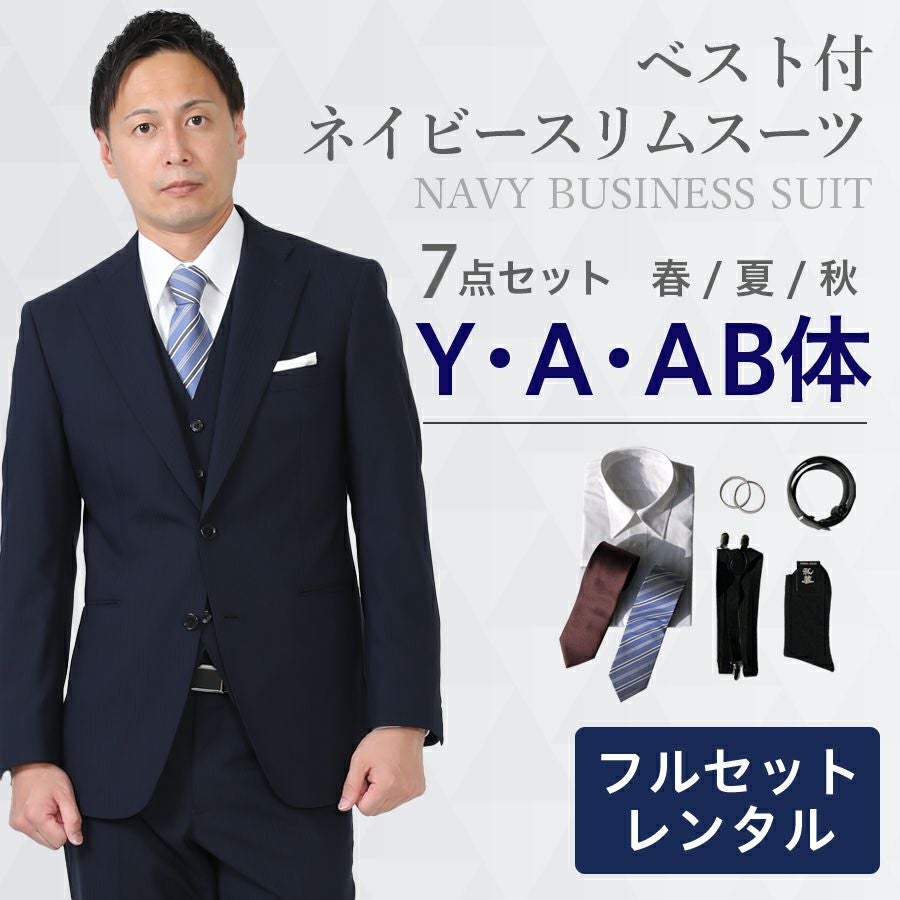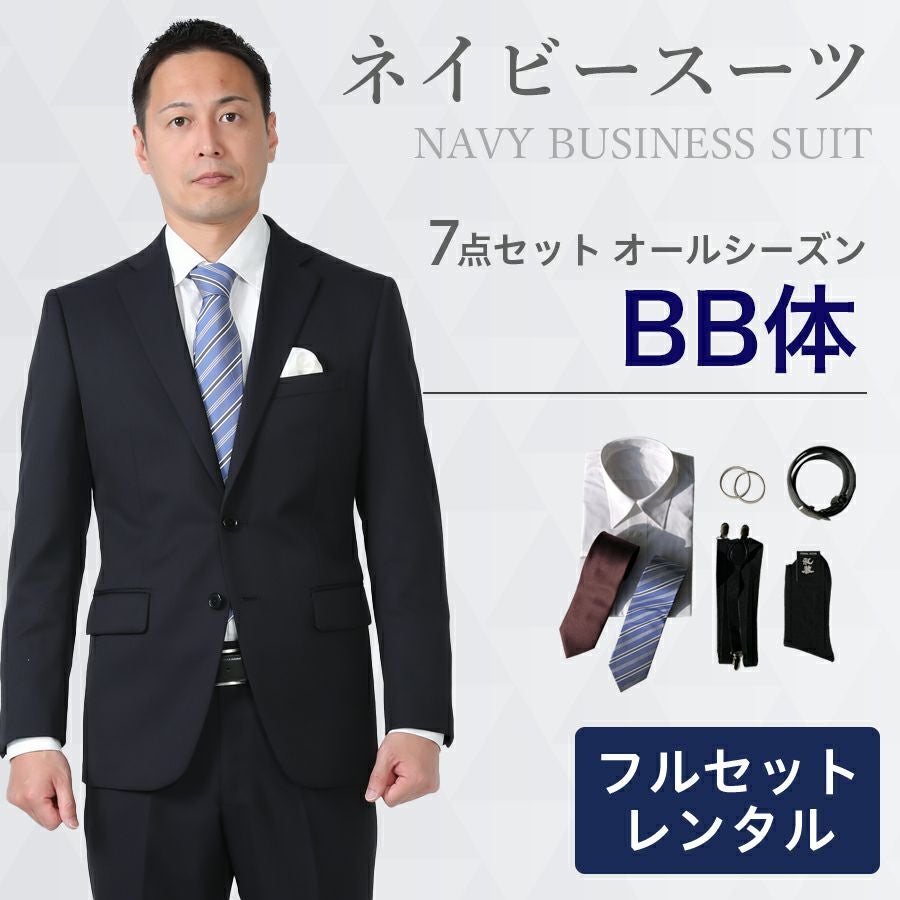 メンズ BB体ネイビースーツ7点セット 喪服・礼服・フォーマルレンタル
