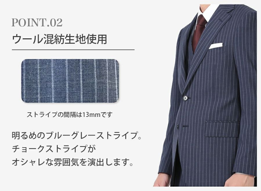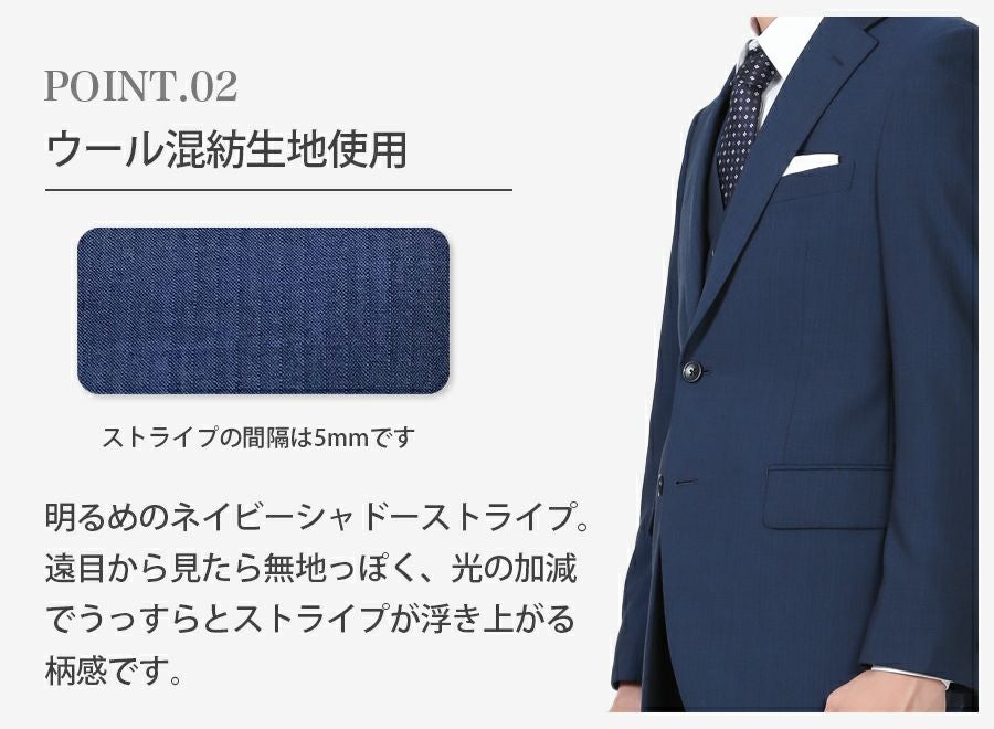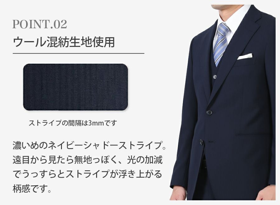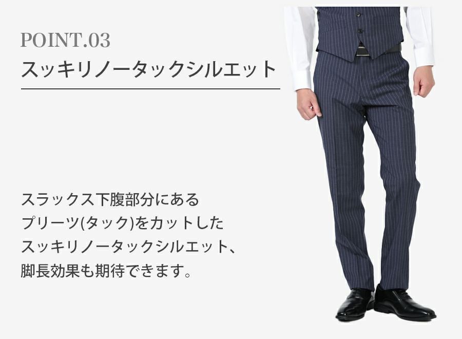 メンズ ベスト付ネイビー(ストライプ)スリムスーツ3点セット 喪服・礼服・フォーマルレンタル