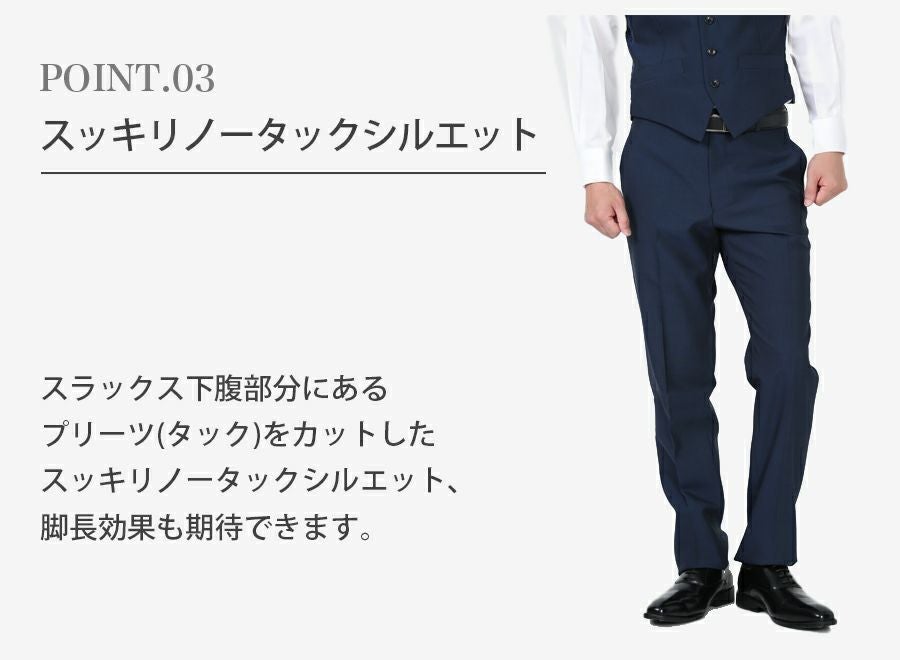 メンズ ベスト付ネイビー(薄)スリムスーツ3点セット 喪服・礼服・フォーマルレンタル