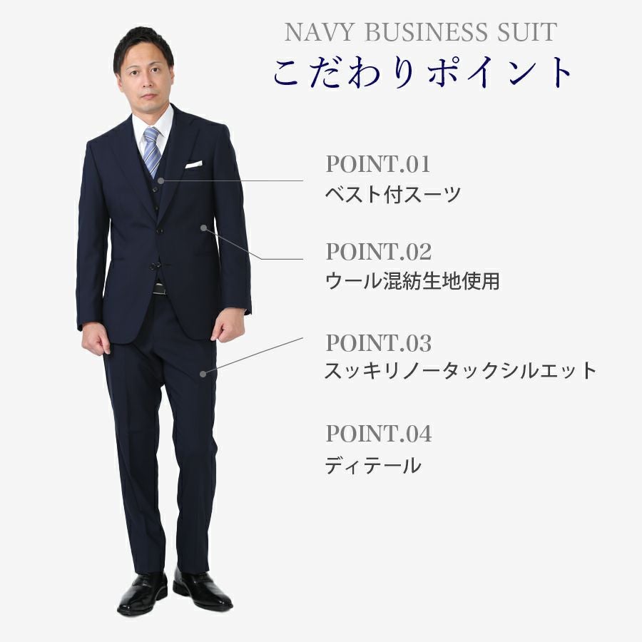 メンズ ネイビースーツ3点セット 喪服・礼服・フォーマルレンタル