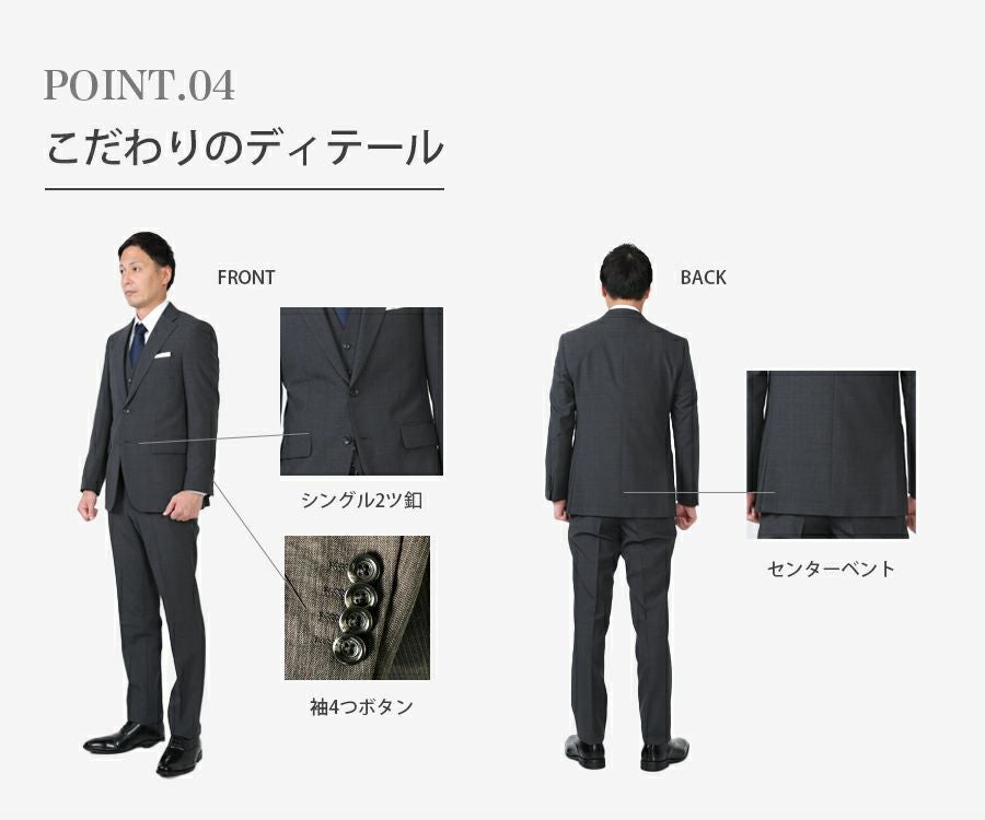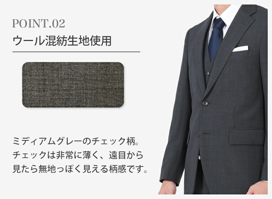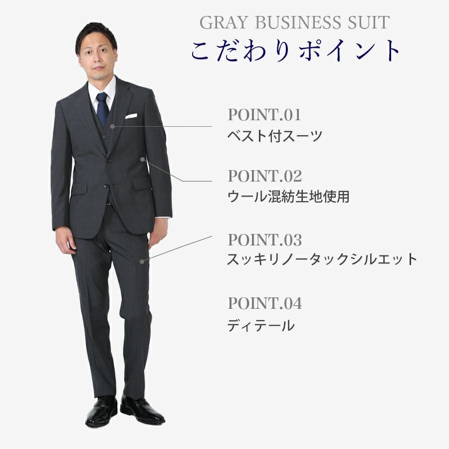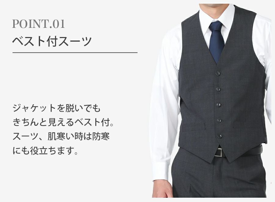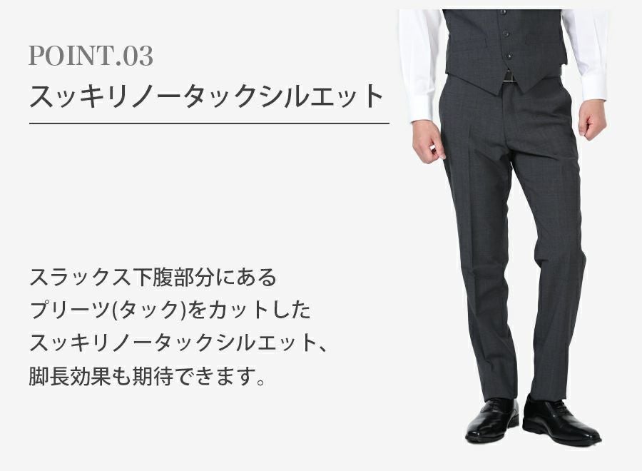 メンズ ベスト付グレースリムスーツ3点セット 喪服・礼服・フォーマルレンタル