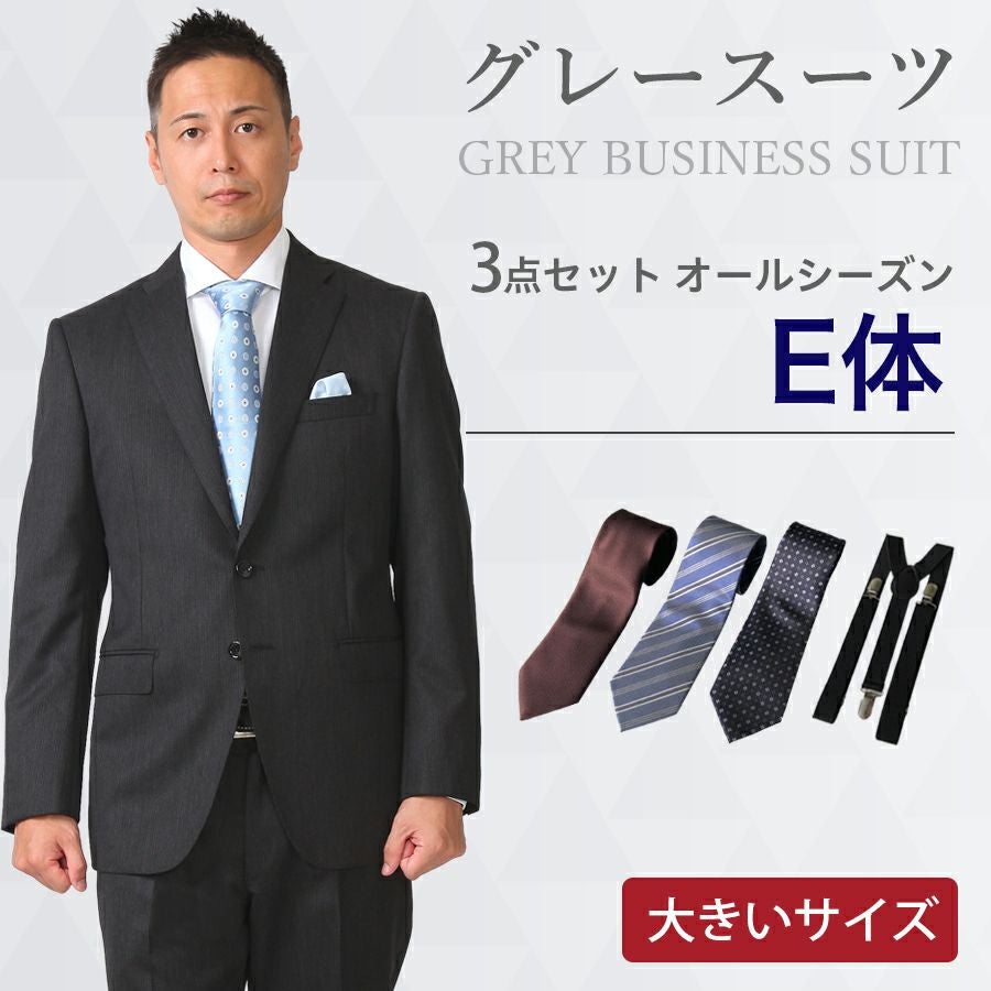 メンズ 大きいサイズ用グレースーツ3点セット 喪服・礼服・フォーマルレンタル