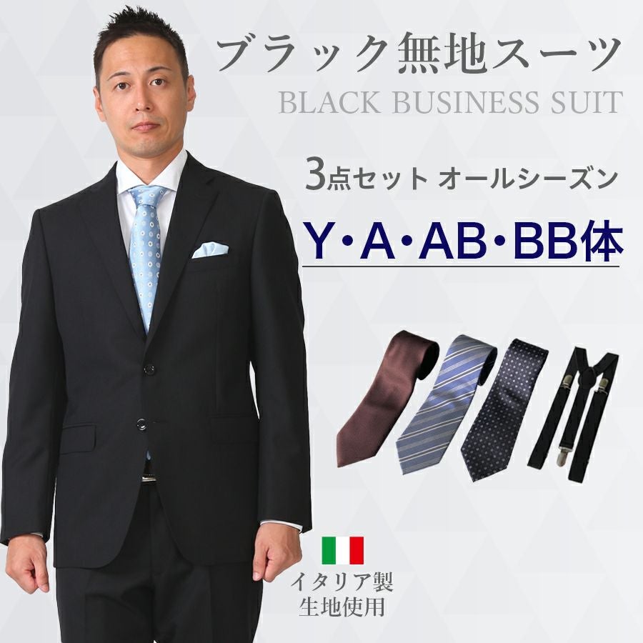 メンズ ブラック無地スーツ3点セット 喪服・礼服・フォーマルレンタル