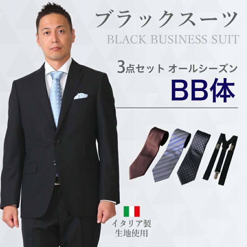 メンズ BB体ブラックスーツ3点セット 喪服・礼服・フォーマルレンタル