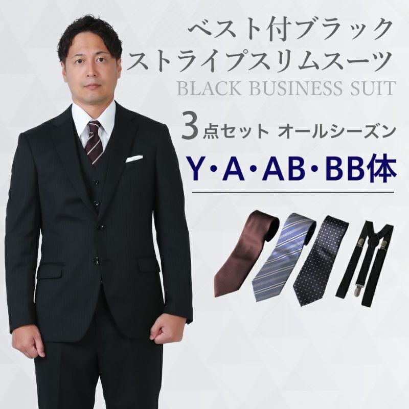 ★さまざまなシーンに対応するベスト付ブラックストライプスーツ・ウール混紡生地を使用し、柔らかさと質感も美しく晴れの日にぴったりの1着です。・かたちは細身のすっきりとしたシルエット。・仕事からリクルート、晴れの日(授業参観、七五三、成人式、結婚式)などなど幅広いシーンで活躍してくれること間違いありません!!