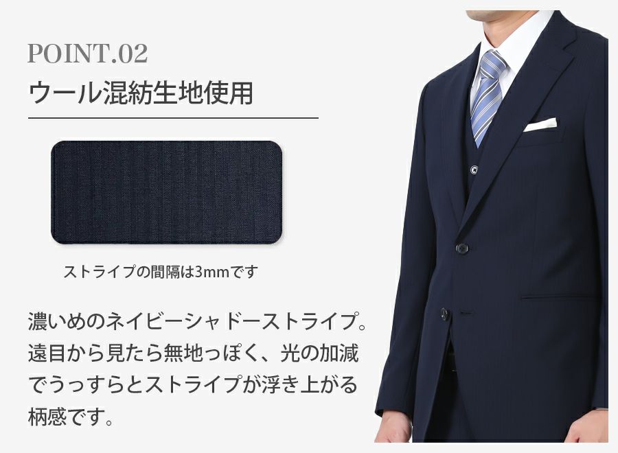 メンズ ベスト付ネイビー(ストライプ)スリムスーツ3点セット 喪服・礼服・フォーマルレンタル