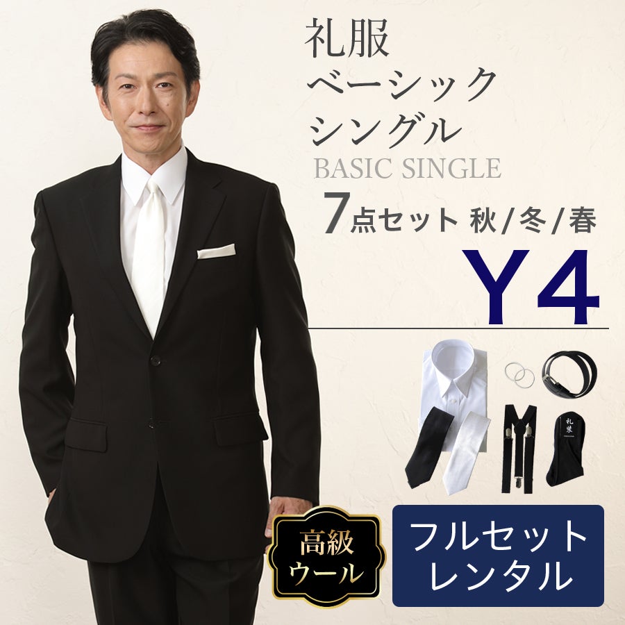 【Y4サイズ】メンズ ウール素材使用ベーシックシングル7点セット 喪服・礼服・フォーマルレンタル