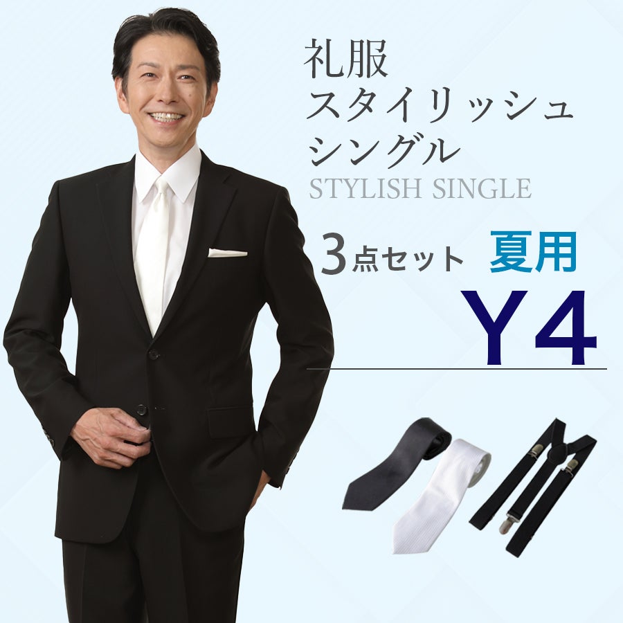 【Y4サイズ】メンズ 夏用スタイリッシュシングル3点セット 喪服・礼服・フォーマルレンタル