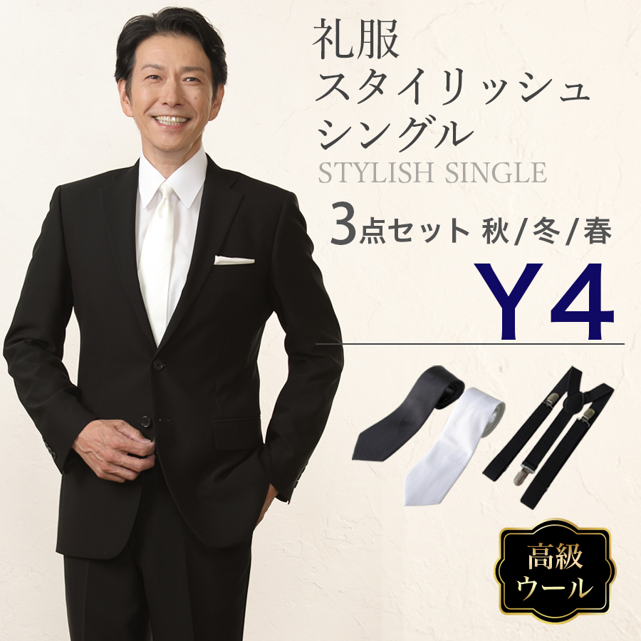 6. 【Y4サイズ】メンズ ウール素材使用スタイリッシュシングル3点セット 喪服・礼服・フォーマルレンタル