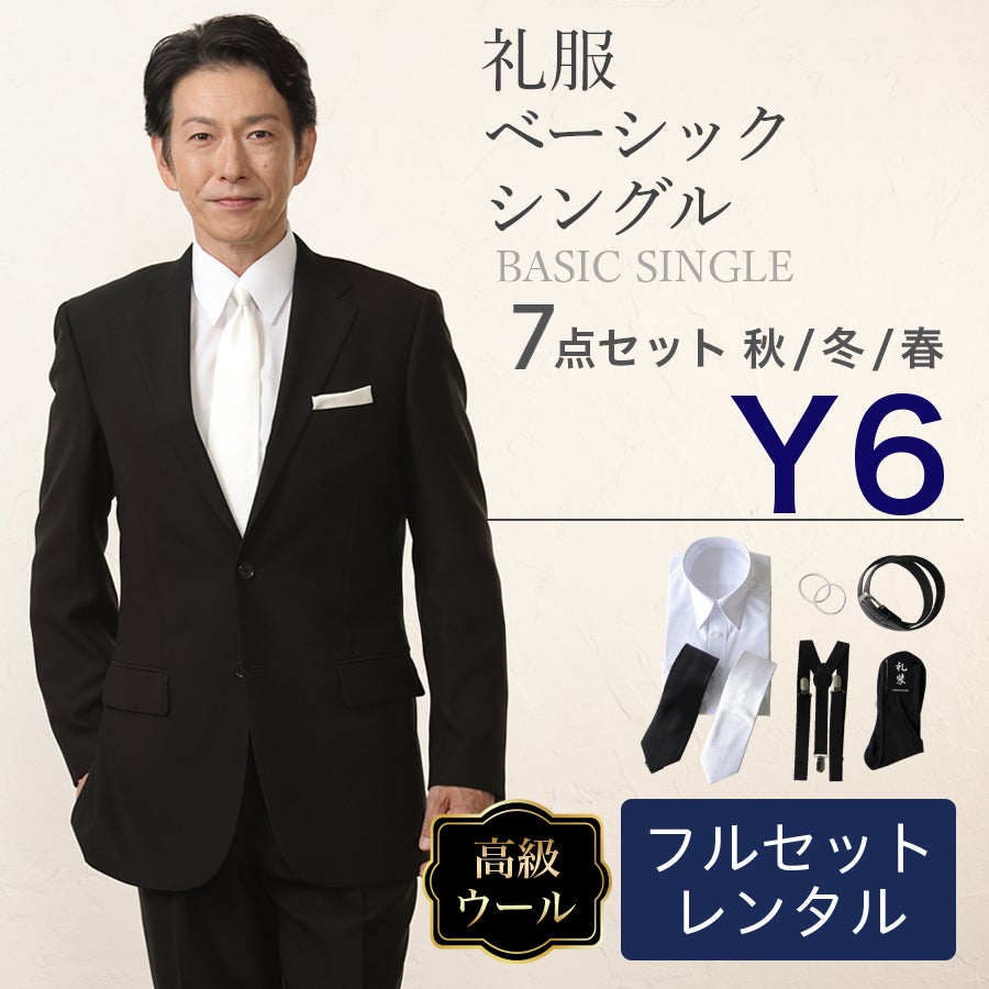 【Y6サイズ】メンズ ウール素材使用ベーシックシングル7点セット 喪服・礼服・フォーマルレンタル